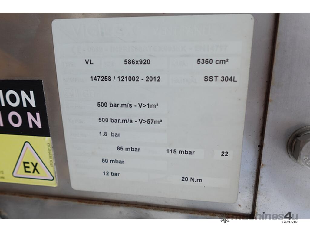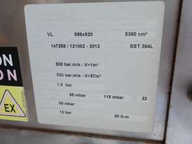 Product inlet duct: unit is fitted with explosion panel.
