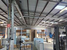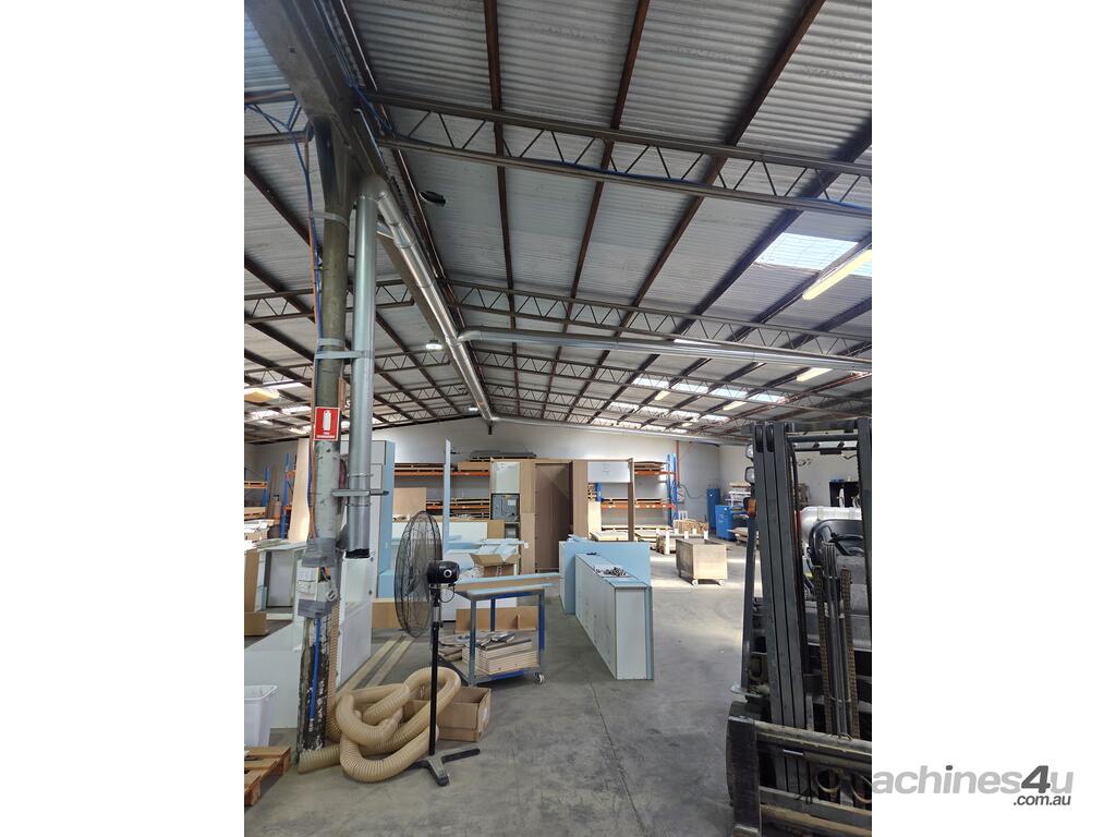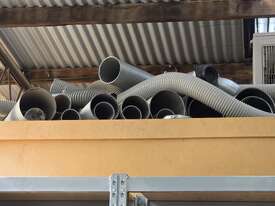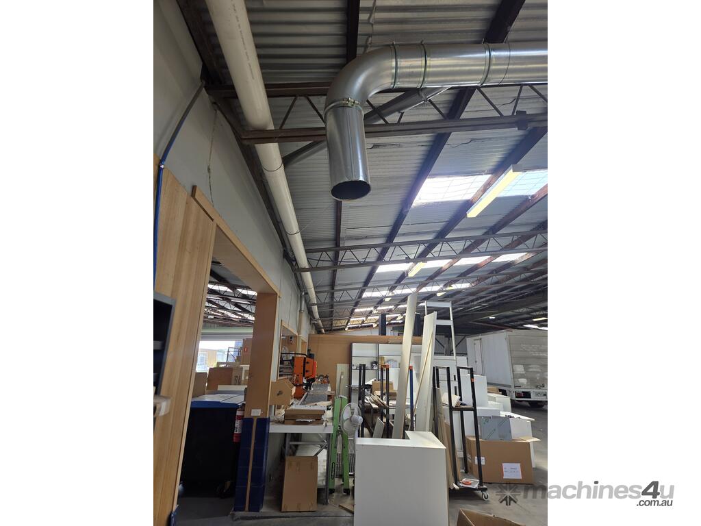 Great extraction unit, only changing due to adding machines to our factory and needing to upgrade our extraction. Heaps of duct work, roughly 70 metres with connectors and gates. Shed floor vac and tube.