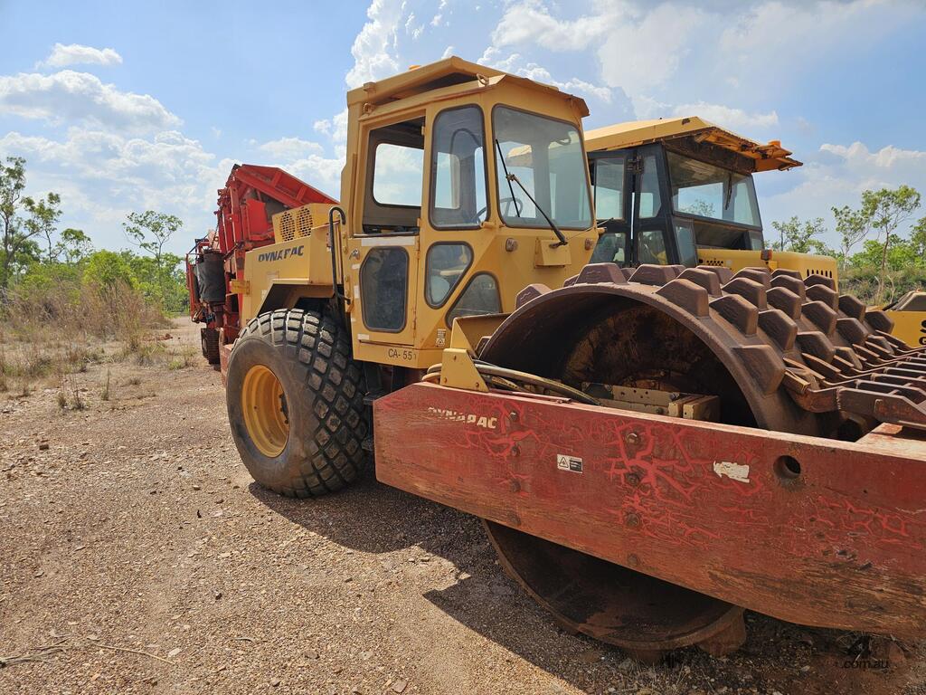 Dependable Dyna Pack CA511PD Sheeps Foot Roller, SN 61410523, built for long-lasting soil compaction. While it has no doors and only a windscreen, this roller is a trusted workhorse, ideal for road construction, farm dams, and civil earthworks.