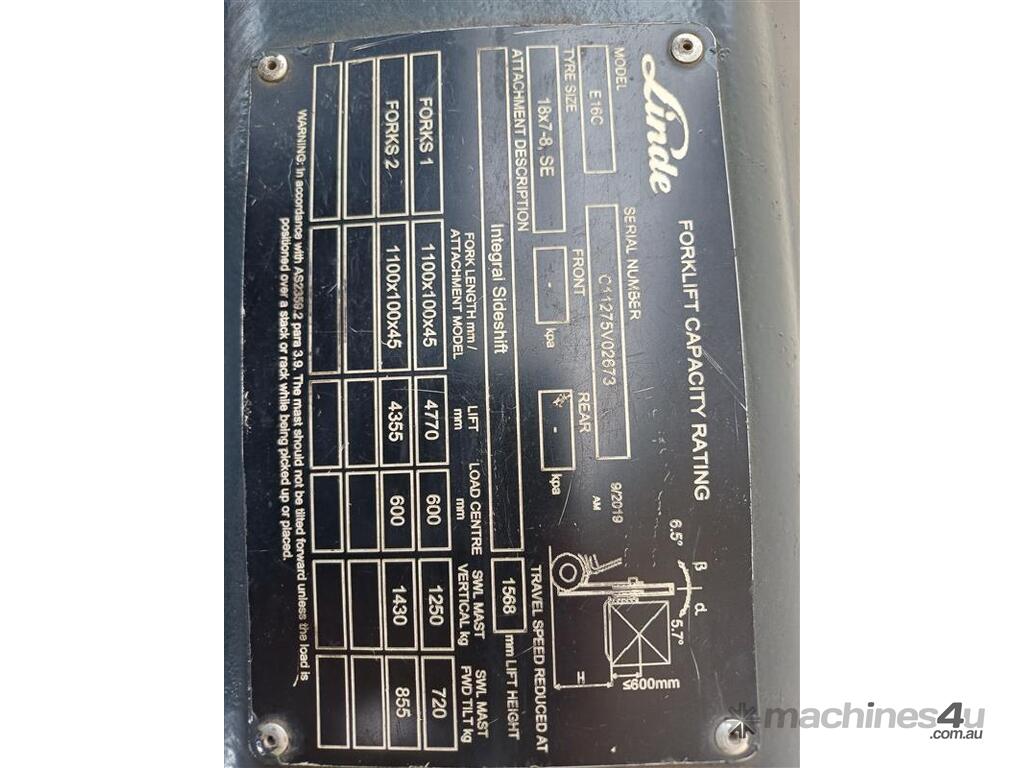 E16C Linde - Late Model - Container Mast Electric Forklift - 12 Months Warranty :      WAS $22,250 NOW $19,990 AUD($21,989 Inc. GST)