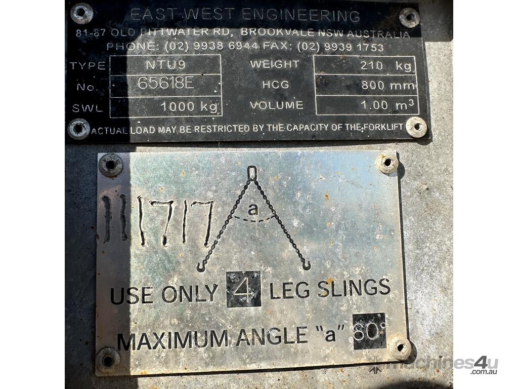 NTU9 Forklift Tipping Bin - NTU Series - Self Dumping - Zinc Plated - 1.00m3 Volume - 1420x1000x900mm - SWL1000kg - East West Engineering