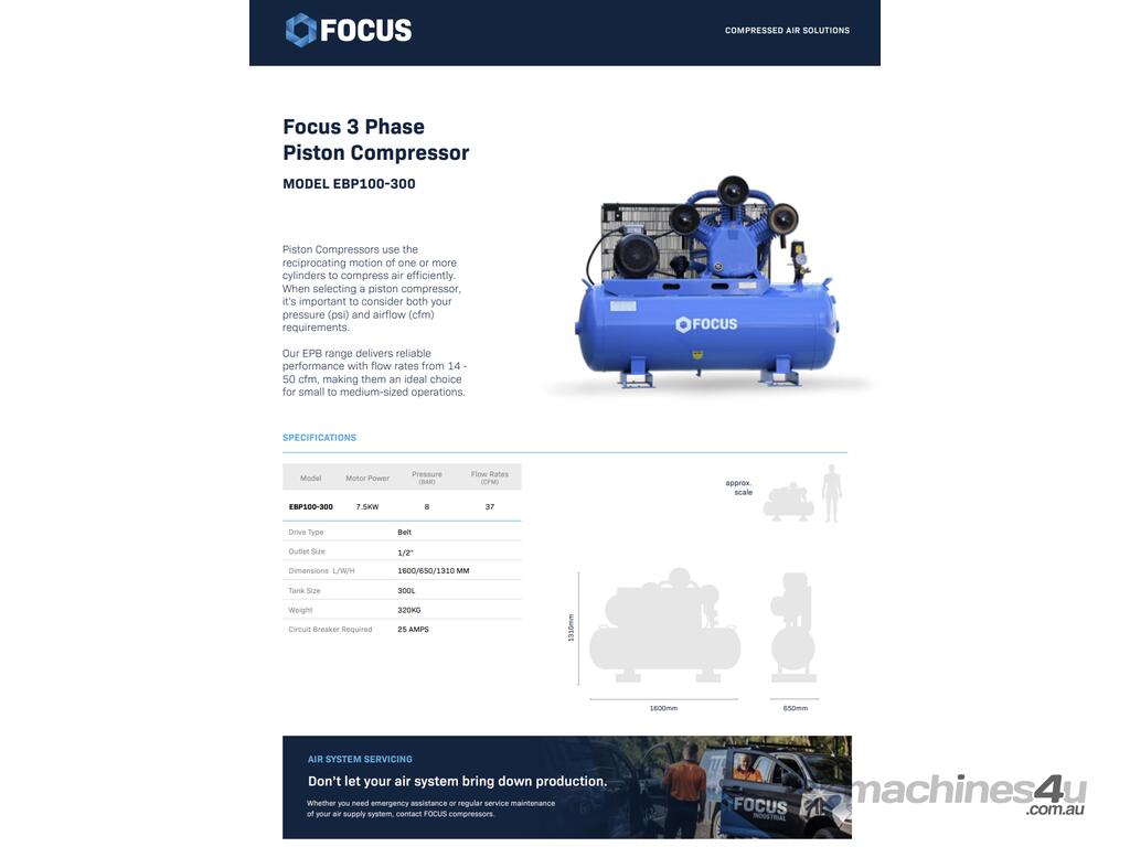 Focus Industrial’s EBP Piston Compressors offer a reliable, cost-effective compressed air solution for smaller operations. More affordable than screw compressors, they’re ideal for workshops, small manufacturing, and sites with lower air demand.