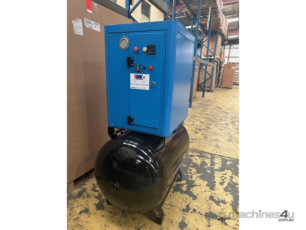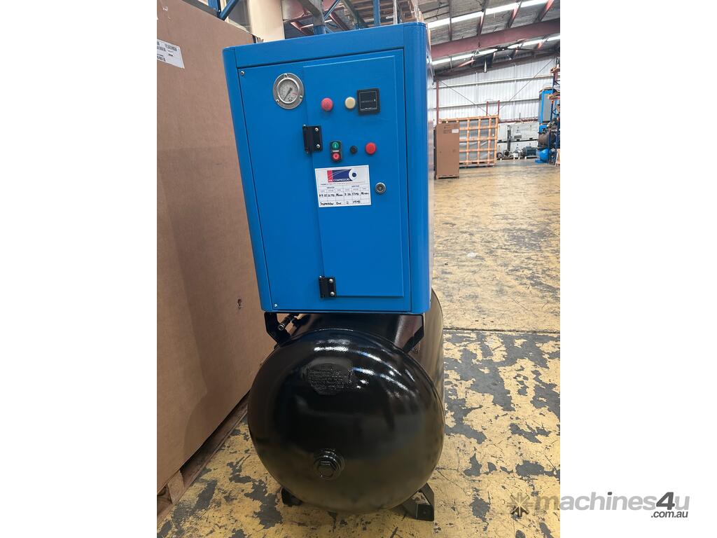 Power System ECO 7.5 rotary screw compressor, receiver mounted, 7.5kW, 10Hp, 3 phase, 270 litre air receiver, fully serviced, rebuilt air end, excellent condition.