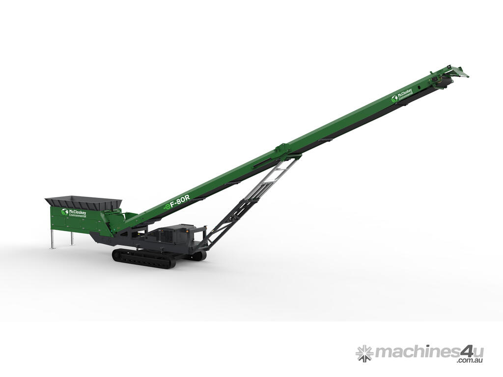 The EF-80R features a large feeder hopper that transfers material onto an 80ft conveyor, all fitted to a slew ring assembly allowing for full 360° radial. Designed to allow operators to stockpile/transfer material it eliminates double handling of materials. Its maneuverability makes this unit very versatile and therefore is ideal for barge loading and unloading, rail loading / unloading and stockpiling. The ability to move parallel enables the operator to maneuver the unit parallel to the vessel meaning the machine can crab alongside.