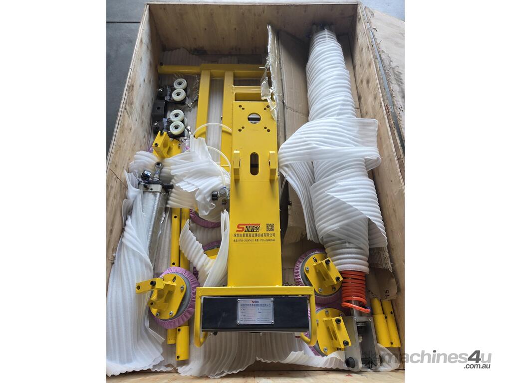 OPTION: SHENZHEN SHINYGO 4 x PAD GLASS/SHEET VACUUM LIFTER, HEAVY DUTY. NO POWER REQUIRED TO OPERATE - COMPRESSED AIR ONLY. PROFESSIONALLY DISMANTLED FOR TRANSPORT. VERY GOOD ORIGINAL CONDITION.