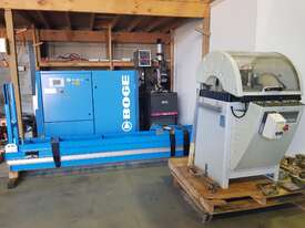 9). BROBO WALDOWN 400mm 240v Single Phase COMPOUND MITRE SAW TNF115 Year 2022 UNUSED, BRAND NEW, SUIT ALUMINIUM, P5ASTICS etc 400mm TCT BLADE, SEMI-AUTOMATIC PNEUMATIC OPERATION INCLUDING 2 x VERTICAL PLUS 2 x HORIZONTAL AIR CLAMPS, 90degree + 45degree LEFT & RIGHT SWIVEL, SAW HEAD TILTS TO 45degree COMPOUND MITRE CUT, MIST SPRAY, MADE IN AUSTRALIA, HEAVY DUTY, INCLUDING 2 x 3 metre FACTORY METAL HEAVY DUTY INFEED / OUTFEED ROLLER TABLES, NEW, BOLTED TO ORIGINAL PALLET