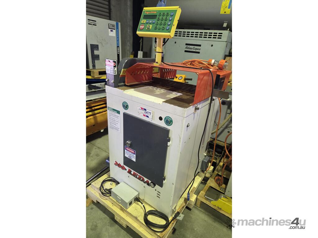 8). LEDA POP-UP UNDERTABLE DOCKING SAW Model YFC-18L, 18 inch SUIT ALUMINIUM, TIMBER etc. 450mm TUNGSTEN BLADE, 7.5kw 10hp 415v, HANDS-FREE 2 x PUSH-BUTTON PNEUMATIC CONTROLS, FULL SAFETY GUARDING, EXTRA SAFETY LIMIT SWITCHES, OVERHEAD CONTROLS, MADE IN TAIWAN, CURRENT SERIES MODEL, HEAVY DUTY, VERY LITTLE USE, VIRTUALLY NEW CONDITION. 1/2 NEW PRICE!