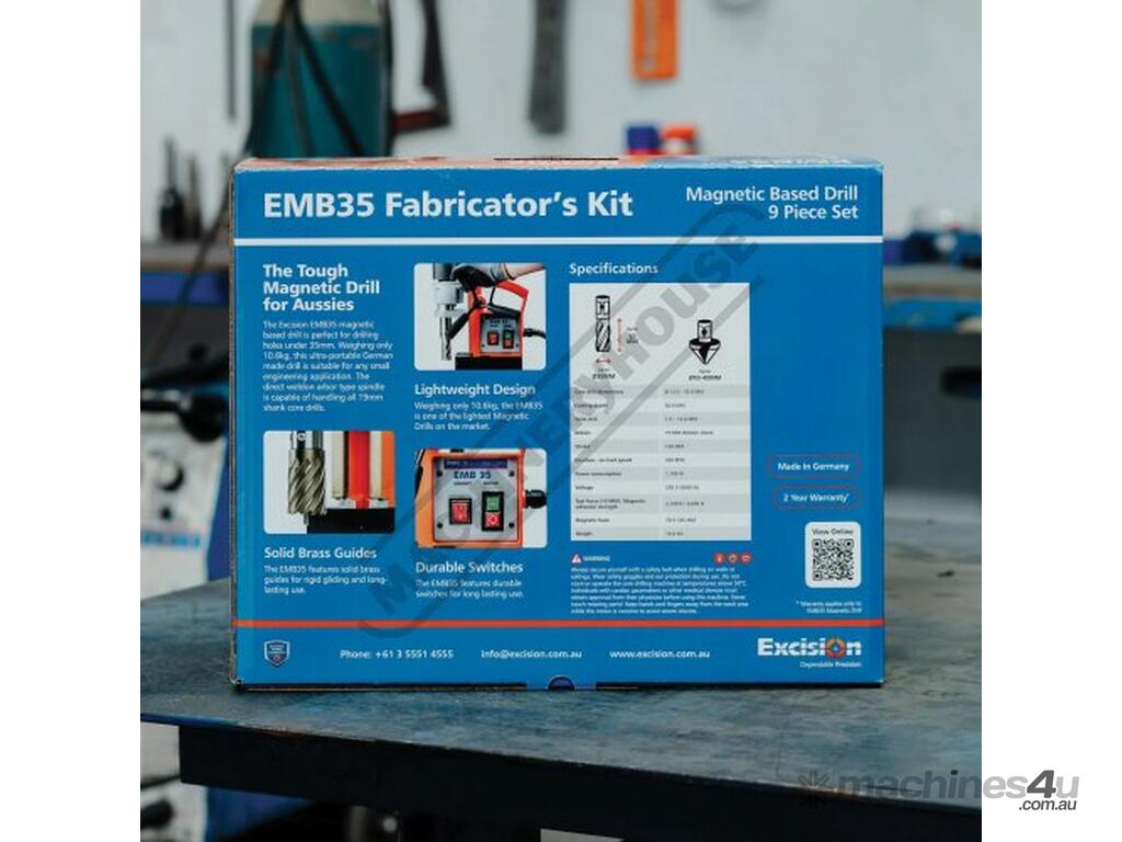 EXCISION EMB-35 Portable Magnetic Drill - FABRICATORS KIT 9 Piece Set Ø35mm Drill Capacity - Manual Feed