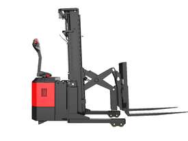The CQE15S is a ride-on reach truck with 1.5-tonne capacity, 590mm pantograph reach, sideshift, with Triplex mast lifting heights up to 5.5 metres. Specially designed for narrow-aisle operations and non-standard pallets, the CQE15S features a spring-loaded folding platform for the operator, making it ideal for long-distance logistics.