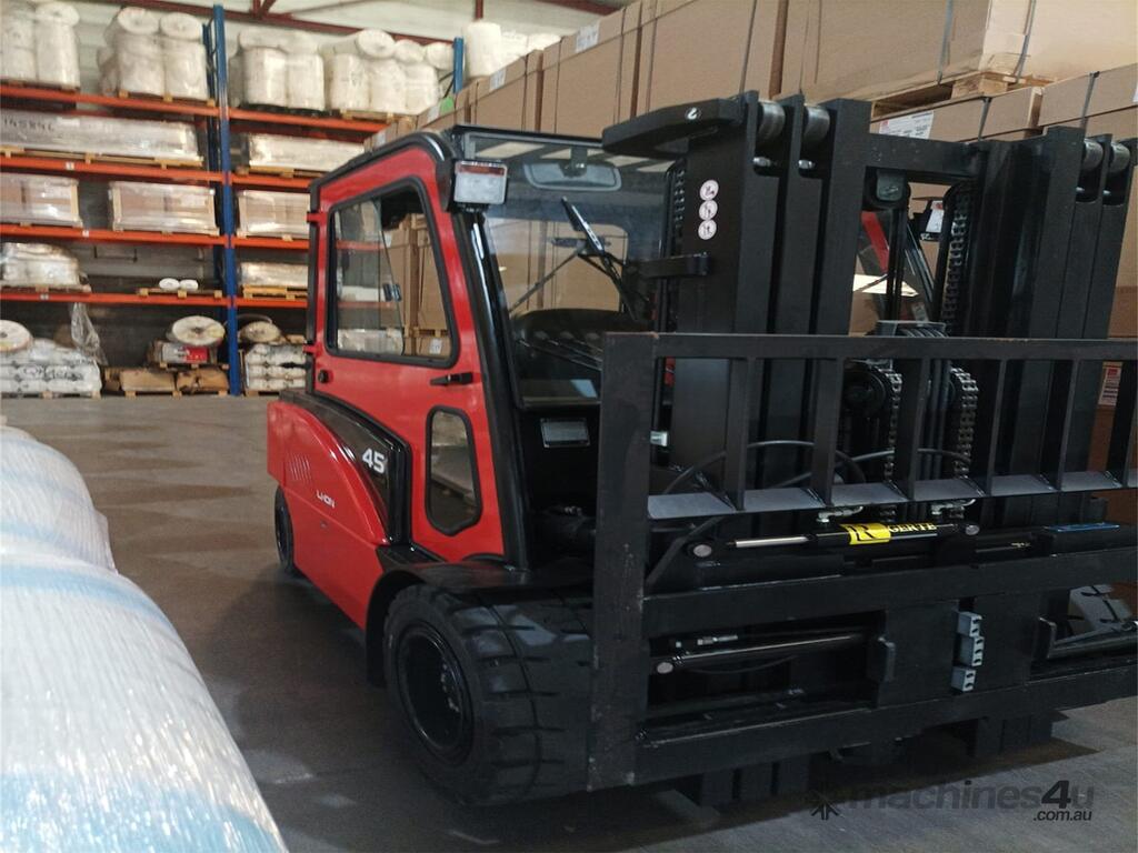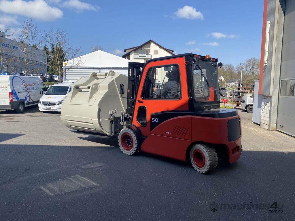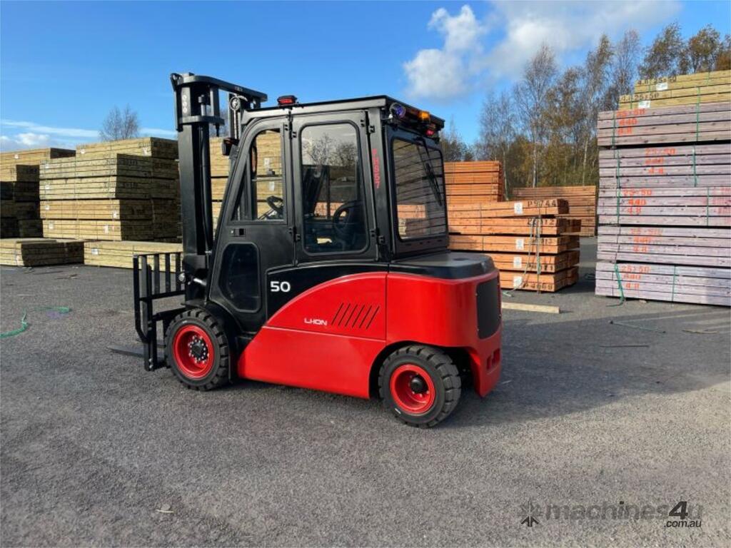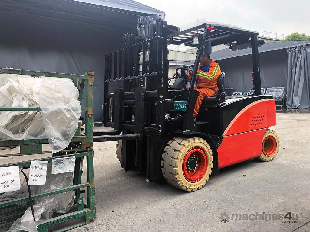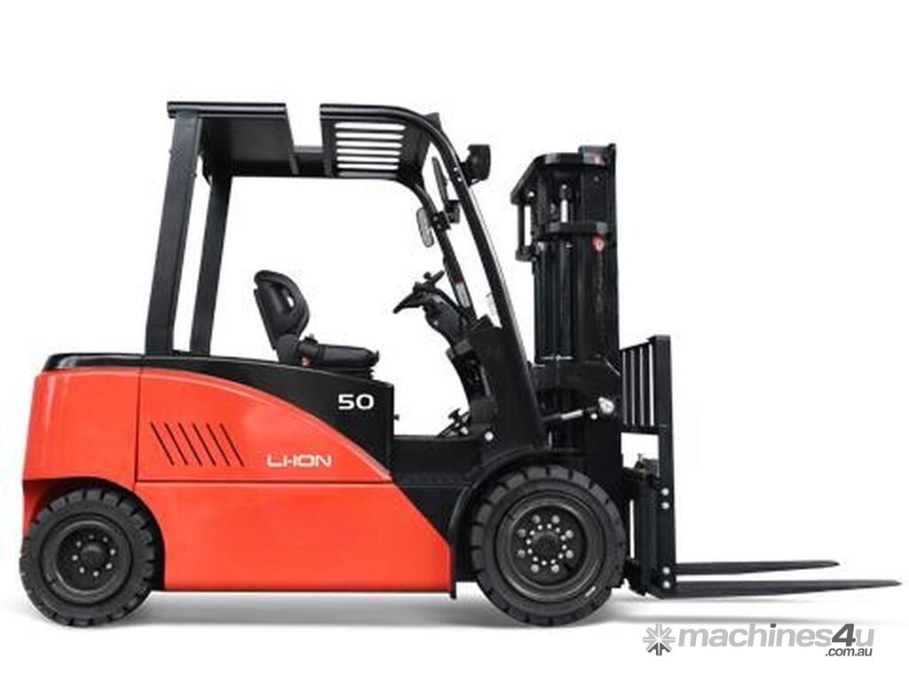 This four wheel electric counterbalance forklift truck is another Li-Ion forklift truck with large load capacity of 4.5/5.0 tons.