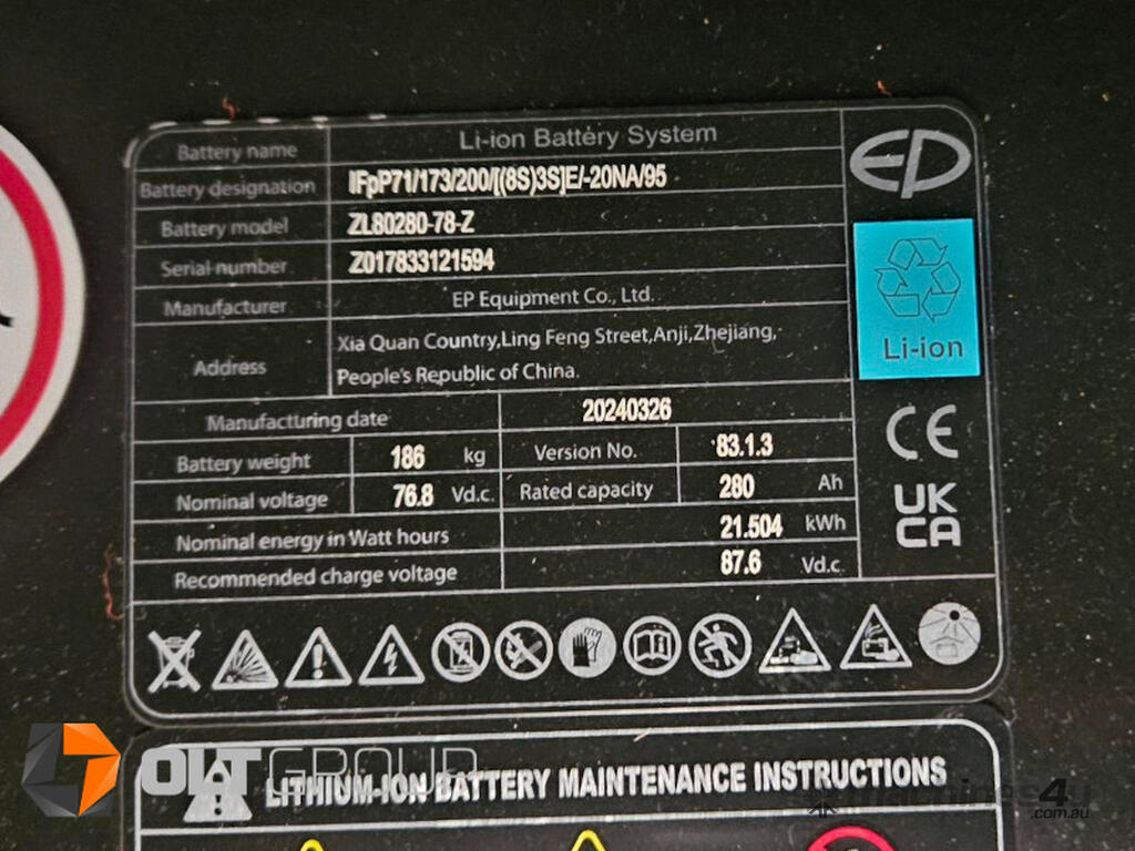 80V/280Ah Lithium Ion Battery – Nil Maintenance (5 Year Warranty)