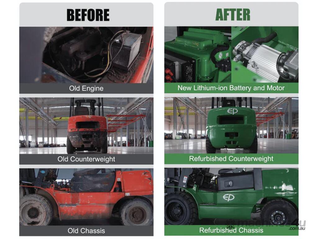 Introducing the re-manufactured EP EFXZ Electric Forklift — the cost effective 3.0 Tonne solution for Australian operations. Combining a proven internal combustion truck chassis with a robust 80v lithium-ion battery, it delivers quiet, zero emissions operation with opportunity charging, solid tyres, excellent gradeability and strong lift and travel performance for reliable productivity. Each unit is fully refurbished, load and safety tested, giving you new truck at a lower entry price.
