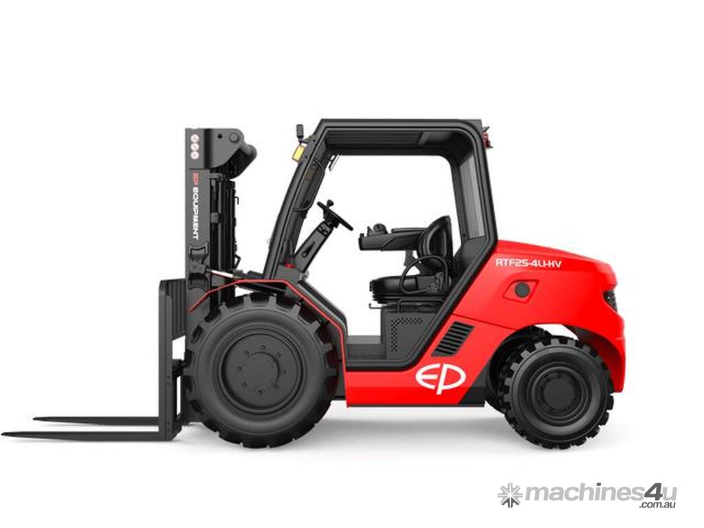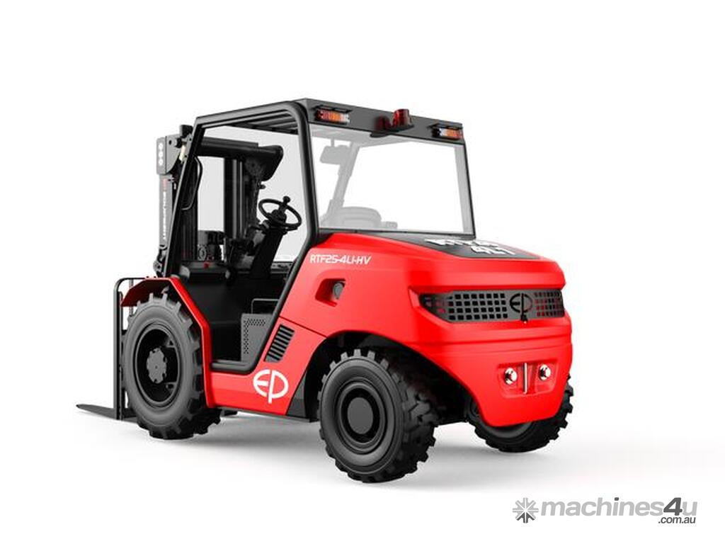 Get *8 YEAR BATTERY WARRANTY* on all New EP RTF25 2.5 Tonne 4WD Lithium Rough-Terrain Forklifts — engineered for Australia’s toughest worksites. Powered by a high-voltage lithium pack with rapid recharge and full-shift endurance, its four-wheel electric traction, high ground clearance and aggressive pneumatic tread tyres deliver dependable grip and stability on mud, sand and rough yards; rugged hydraulics and sealed electrics provide quiet, low-maintenance performance that replaces diesel without compromising power.