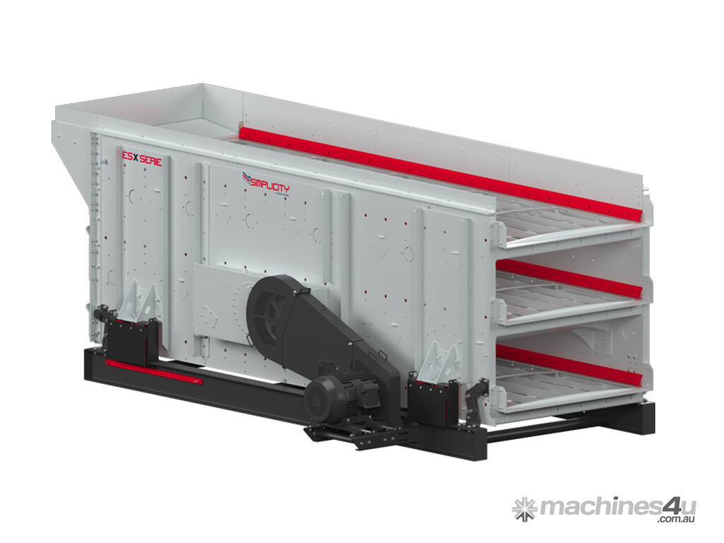 The ESX “Extra Clearance” Series by Simplicity is the newest addition to our trusted range of screening solutions. The elliptical stroke design has taken the legendary oval stroke screen to the next level. The increased clearance between the screen decks provides easy maintenance access to the media. Featuring 23” wide opening between the top and middle deck along with a 27.5” wide opening between the middle and bottom deck while staying within the same footprint of the previous version, except for standing 22” taller. Upgrades to the drive train and suspension ensure that this screen still has the performance that you can count on for years to come.The ESX Series with its variable slope operation gives customers a product that handles more applications than other screens on the market. The increased capabilities, higher production, enhanced durability, but most importantly the ”Extra Clearance” of the ESX Series, makes it an industry leader.