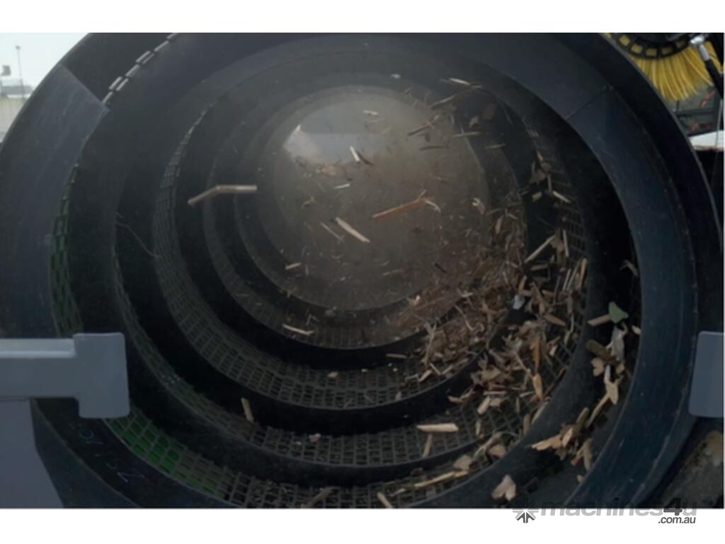 The interchangeable drum is removable from the side of the machine via a side opening door andretractable feed conveyor. The quick change drum system allows a machine to be quickly changed to adifferent feed material rapidly, eliminating the need for multiple machines for multiple waste streams onsite. The machine will also fit readily available standard 620 drums, also used on Doppstadt, Terex and EDGE trommels, amongst other. There is an intelligent control system designed to optimize throughput without causing stalling or slowing of the drum screen.