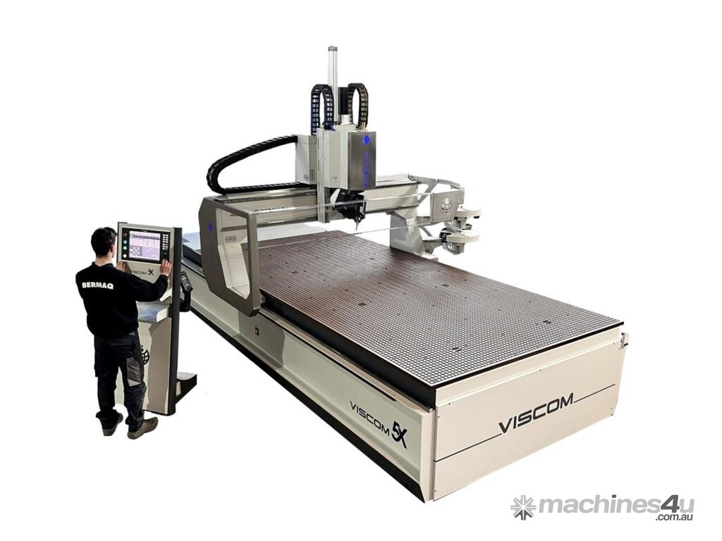 BERMAQ’s VISCOM 5X 5-axis CNC milling machine has an 11kW milling head in HSK-F63 and liquid cooling, tool tester for height calibration, phenolic resin vacuum table with 8 automatic and independent vacuum zones(configurable from the control panel and even from the machining program), and incorporates threaded metal inserts for clamping parts and fixtures.