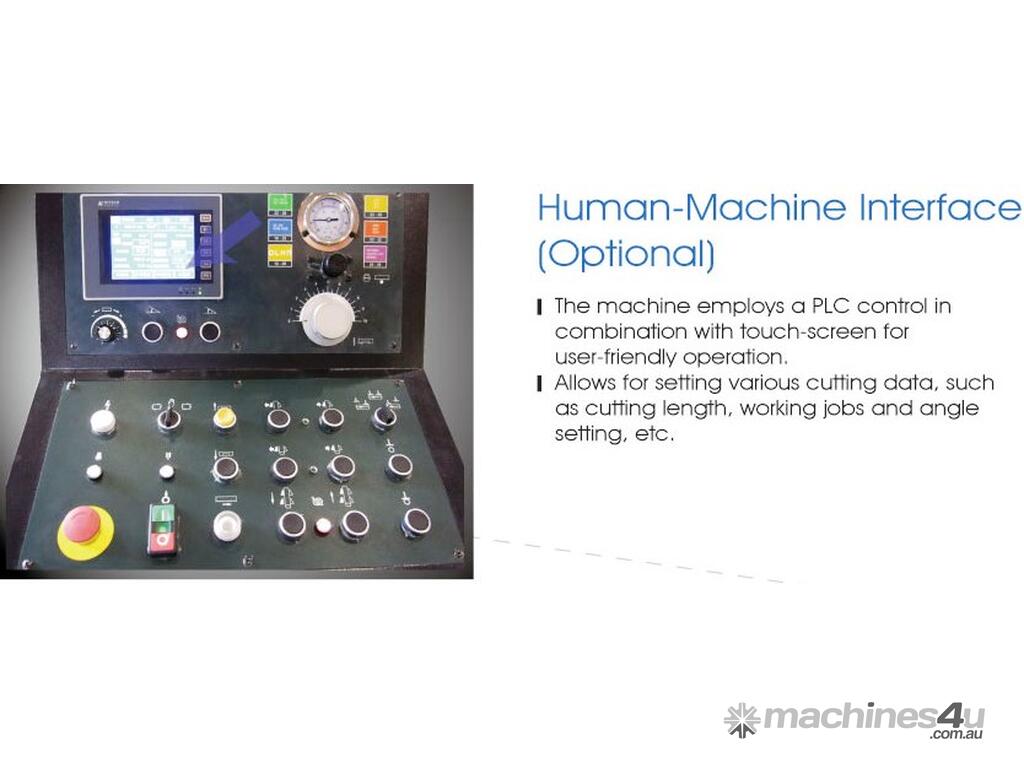 NC controller with input for cutting data such as cutting length, working jobs and angle setting.