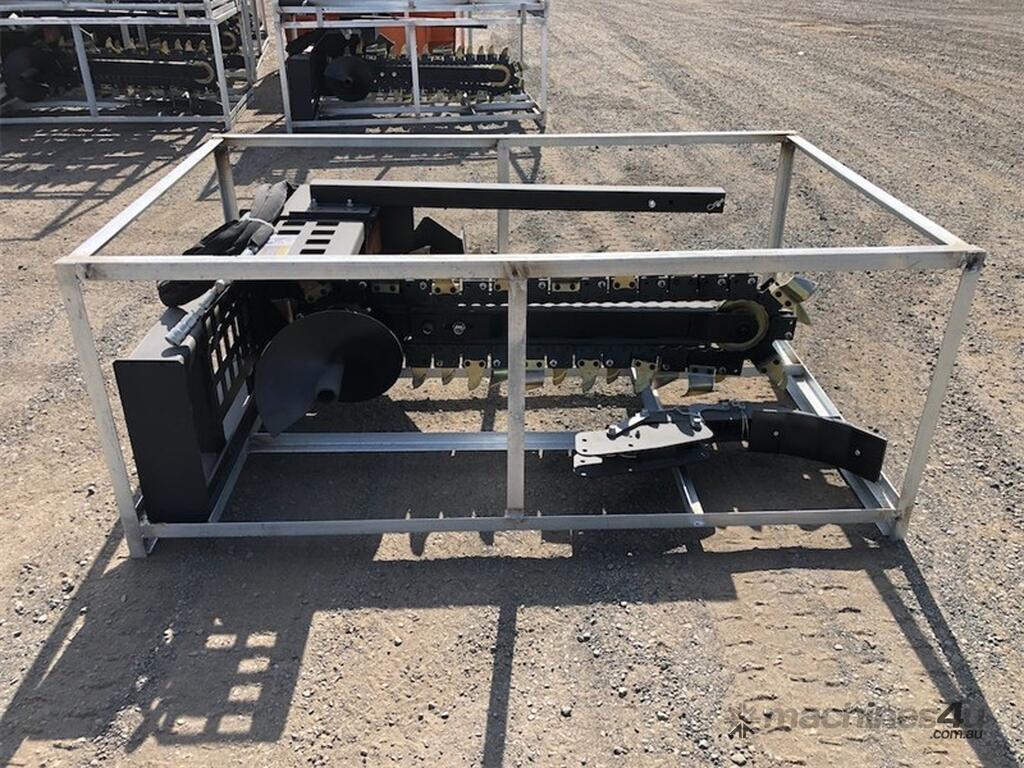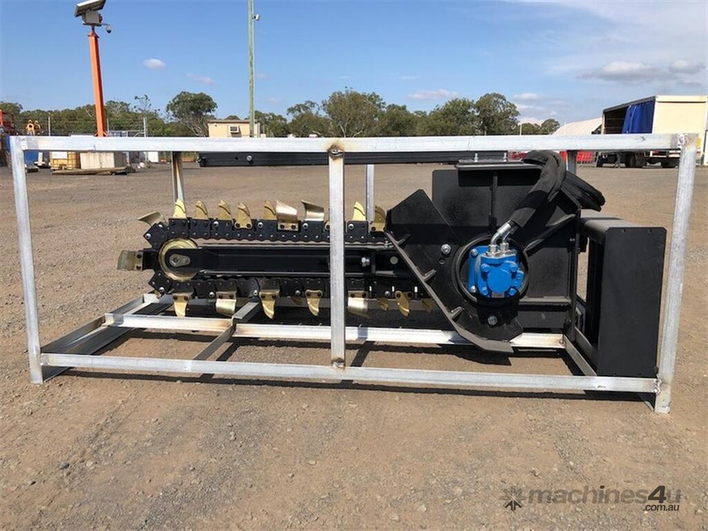 EXEQ SKID STEER TRENCHER ATTACHMENT. DIGGING WIDTH: 200mm, DIPPING DEPTH: 900mm, REQUIRED FLOW: 50-75L/min, SHIPPING DIMENSIONS: 1900mm L x 1240mm W x 790mm H. APPROX. WEIGHT: 360KGS LOCATION: HALFERTY STREET, EMERALD, QLD 4720. INSPECTIONS & COLLECTIONS: MONDAY TO FRIDAY, 8AM TO 4PM. ENQUIRIES: MATT BEARD ON .