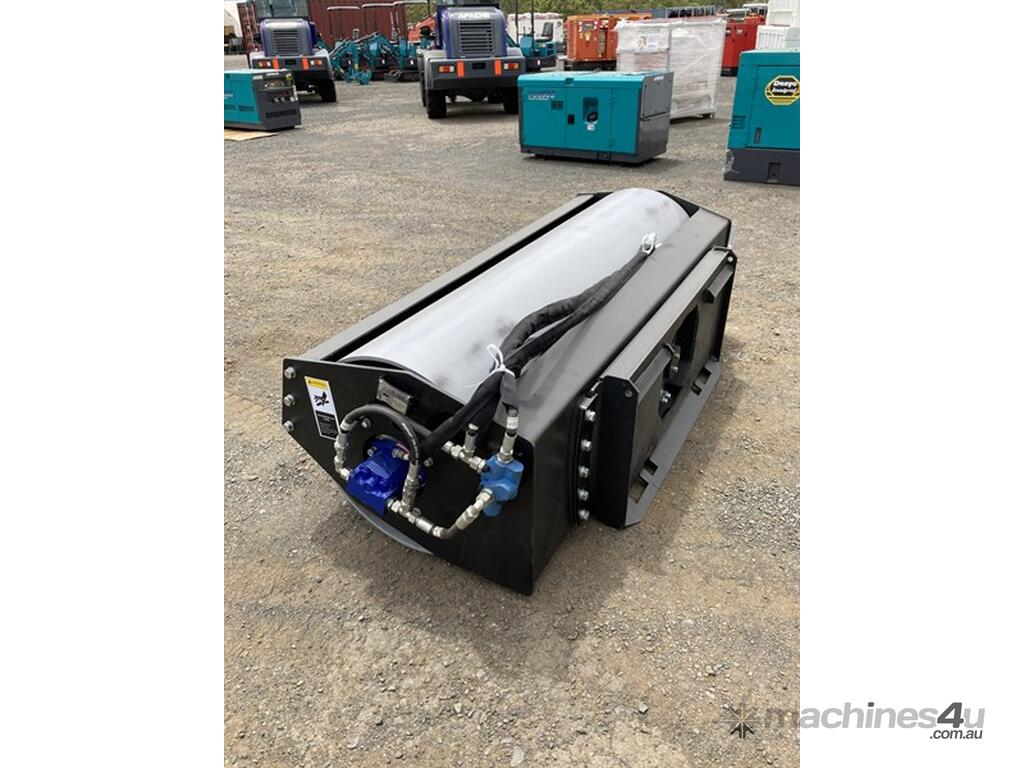 EXEQ VIBRATORY SKID STEER ROLLER ATTACHMENT. VIBRATION FREQUENCY: 2600Vpm, VIBRATION FORCE: 3880KGS, DRUM DIAMETER: 600mm, DRUM WIDTH: 1855mm, APPROX. SHIPPING DIMENSIONS: 2150mm L x 950mm W x 630mm H. APPROX. WEIGHT: 860KGS.