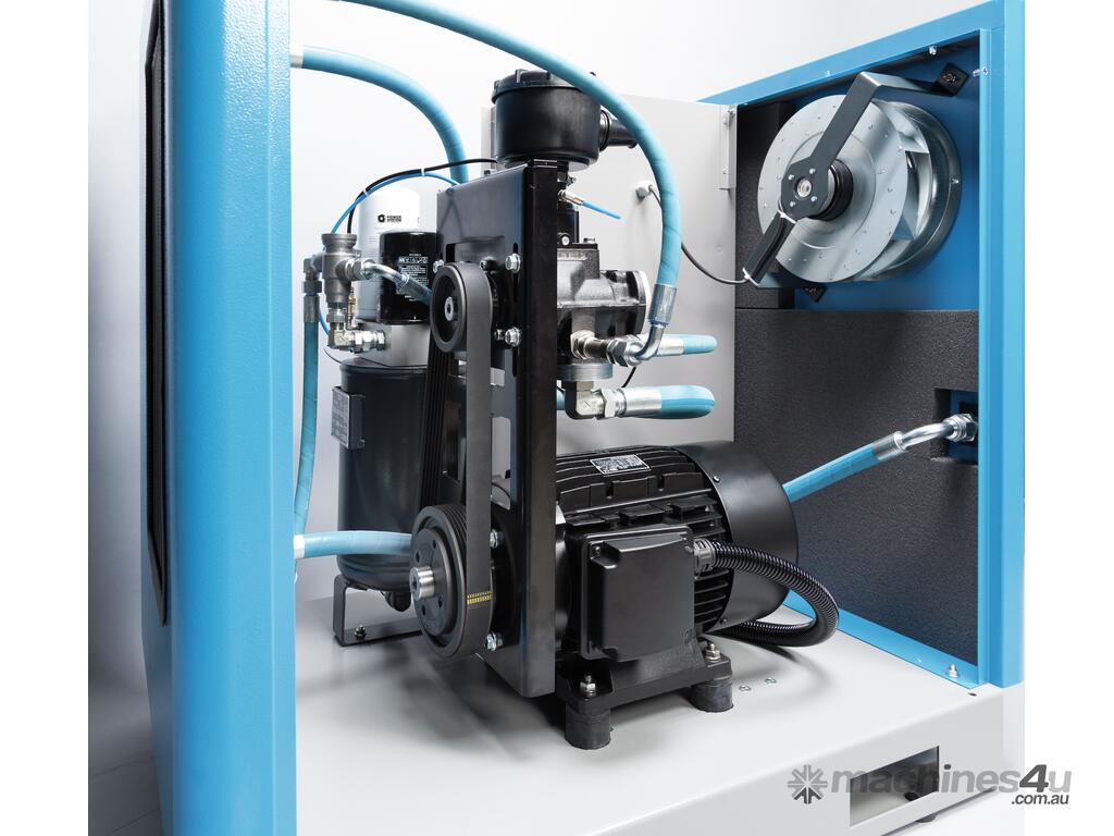 The Eco Series electric rotary screw air compressors are integrated, tank-mounted packages ready for immediate use, ideal for small-to-medium industrial applications. They are typically complemented by additional downstream compressed air treatment equipment.