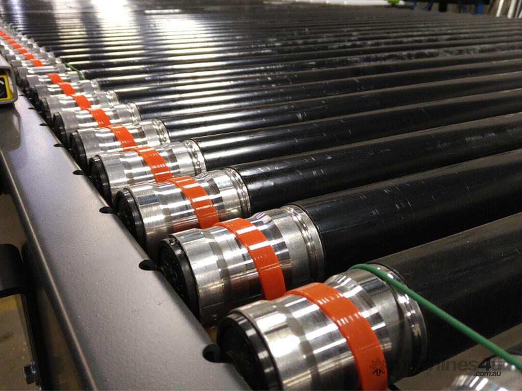 - Transfer belts nested in between the rollers are used to side shift product to a set of motorized rollers parallel to your