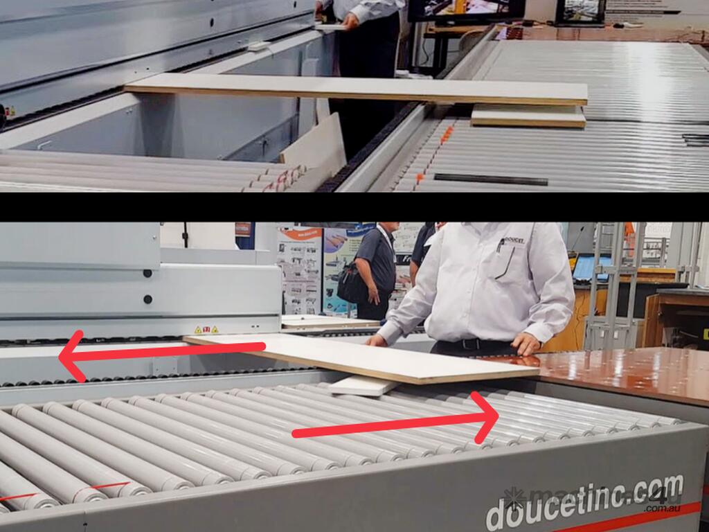 DOUCET BT3 Edgebander and Sanding machine return units.