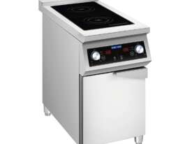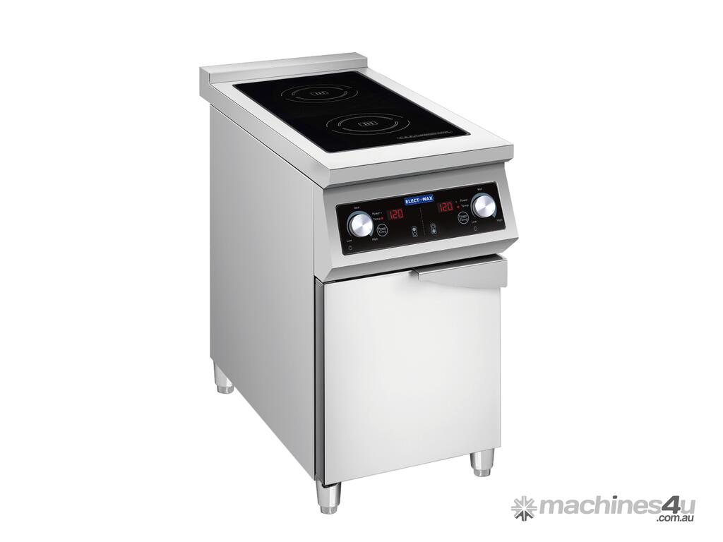 Electmax 700 Series Induction 2-Burner Cooker with Door - EIC400 Key Features Stainless steel body and stand Ceramic glass cooktop Touch control/Adjust the power by knob 5000W power each burner Cooking temperature: 60°C to 240°C Extra storage space under the cooktop Electric overheating protection Timer range: 0-180min Splashback guard at the back Without a plug, hard wiring Optional cabinet door available 2-burner induction cooker with splashback on stand 1 Year Parts and Labour + 1 Year Parts Only for Products Registered within 14 Days of Invoice Depth: 700 mm | Width: 400 mm | Height: 860 mm | Power: 415, 3~N, 10kW | Price: $3299 | Manufacturer: Electmax | Warranty: 1 Year Parts and Labour + 1 Year Parts Only for Products Registered within 14 Days of Invoice