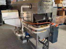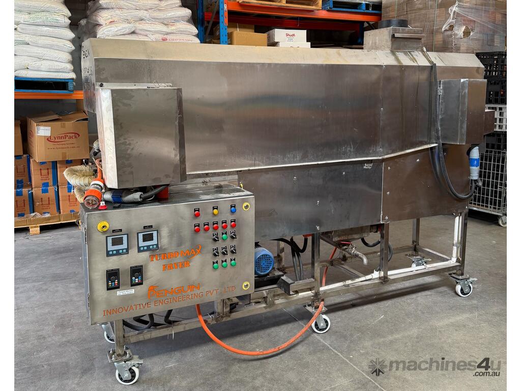 Stainless steel continuous fryer for high volume production of fried snack products. Designed for seamless integration into commercial lines, it delivers consistent product quality with minimal intervention, reliable temperature control, and continuous oil filtration so you maintain crispness and throughput without interruption.