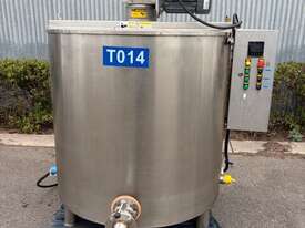 High-quality stainless steel electrically heated tank with an approximate 1000L capacity, designed for controlled heating and efficient product mixing.
