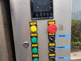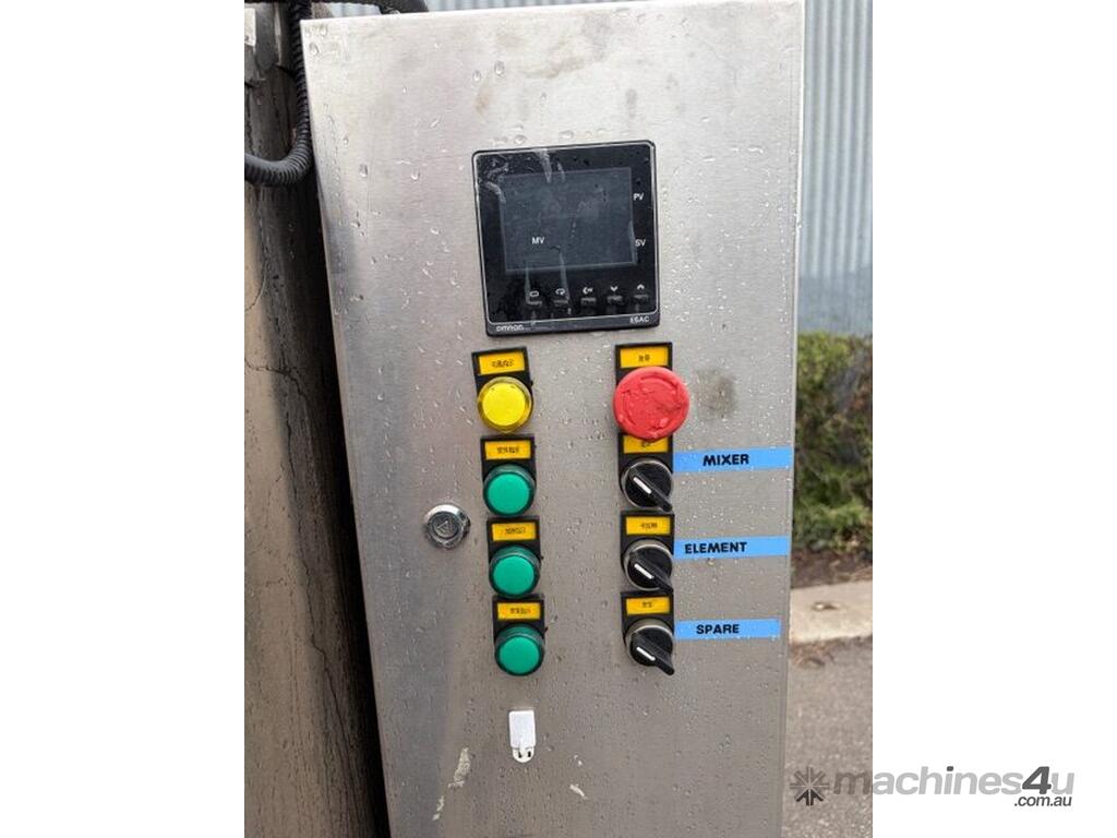 Equipped with two 3kW, 415V heating elements installed within the jacket, ensuring the elements do not come into direct contact with the product. Temperature is managed via an adjustable controller with integrated thermostat for precise thermal regulation.