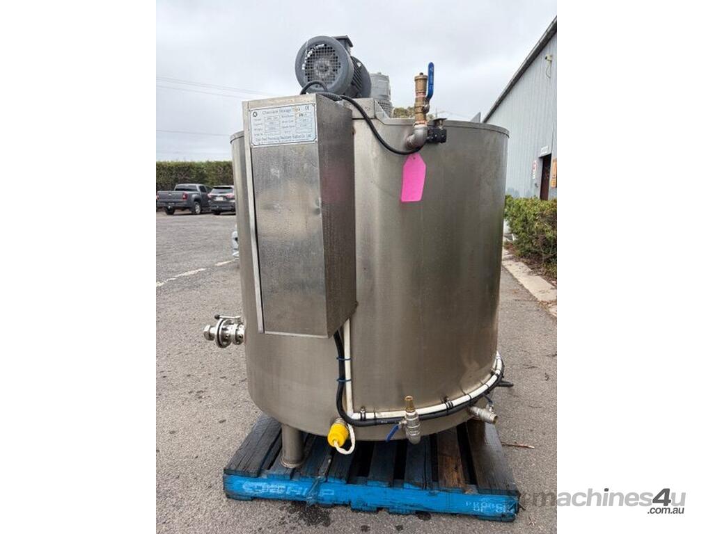 Fitted with a 75mm outlet and valve for efficient discharge.Year of Manufacture: 2018Previous Application: Chocolate mixing tank