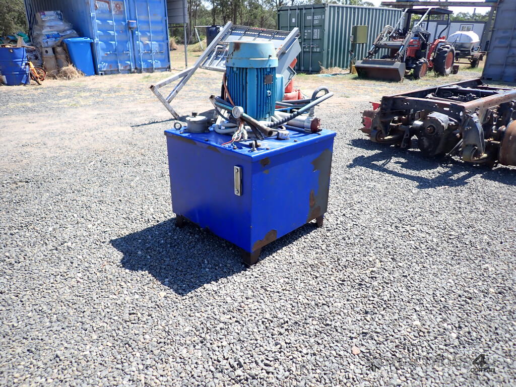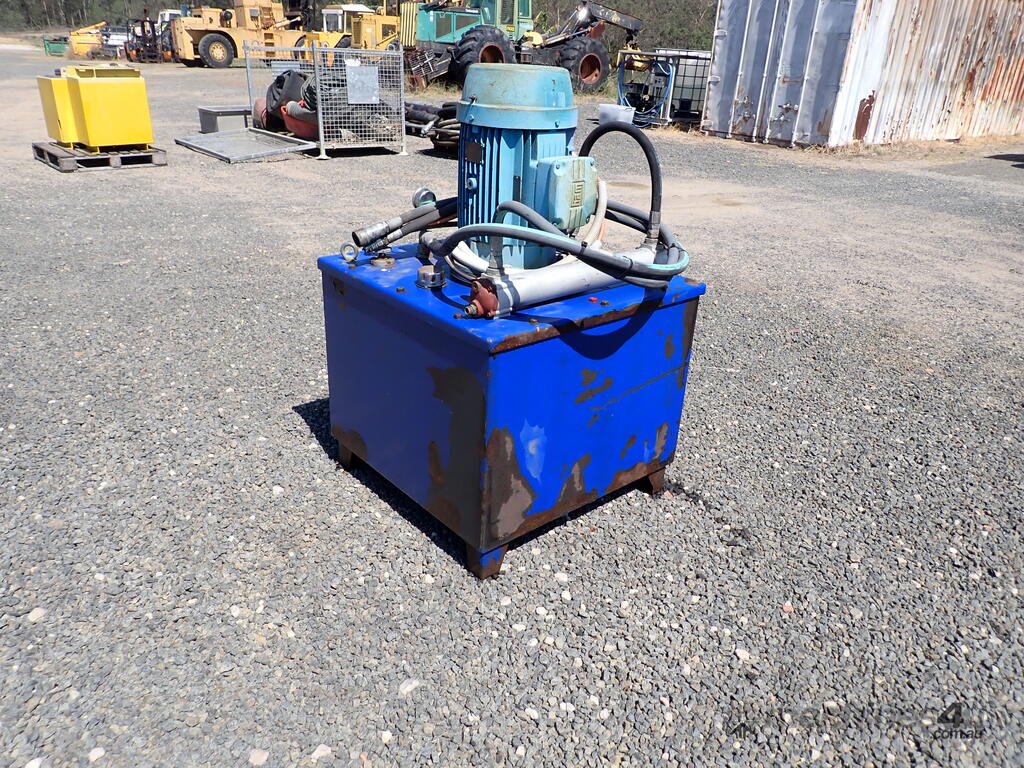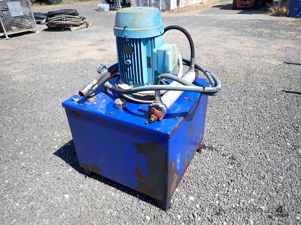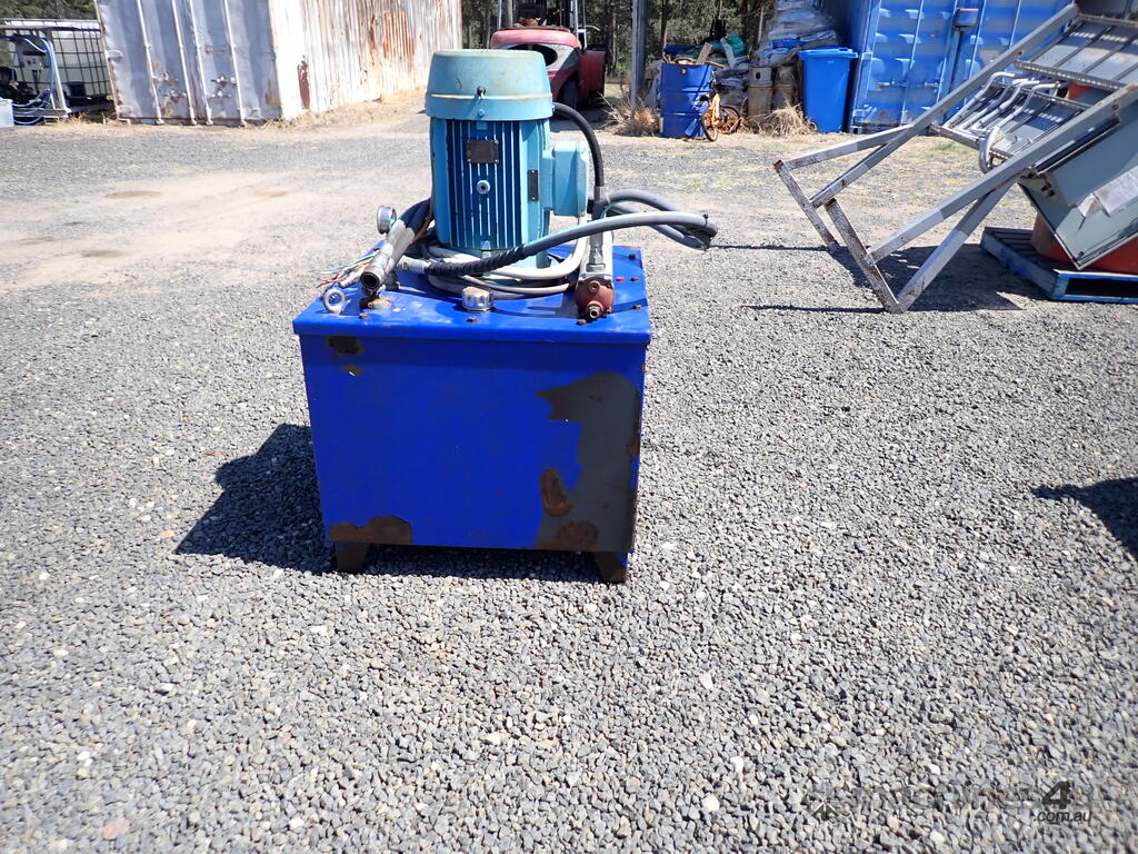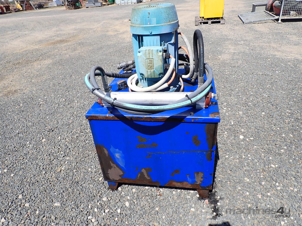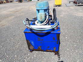 Electric hydraulic power pack, Custom made, 15 KW 1460 Rpm 3 phase electric motor, in tank hydraulic pump, Fluid Dynamics oil cooler/heat exchanger, 280L oil capacity, pressure gauge, hoses with quick couplers, in tank filter, onit appears to be in good condition and was operating until removed.