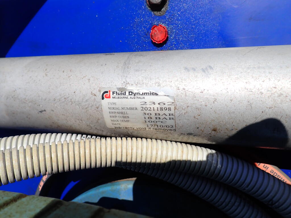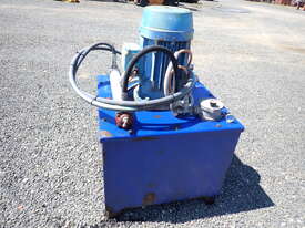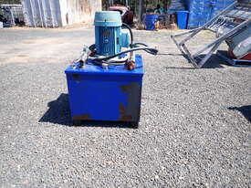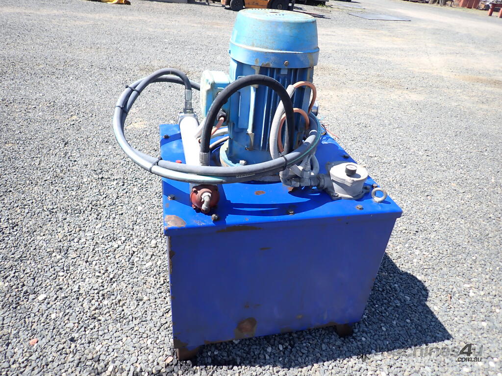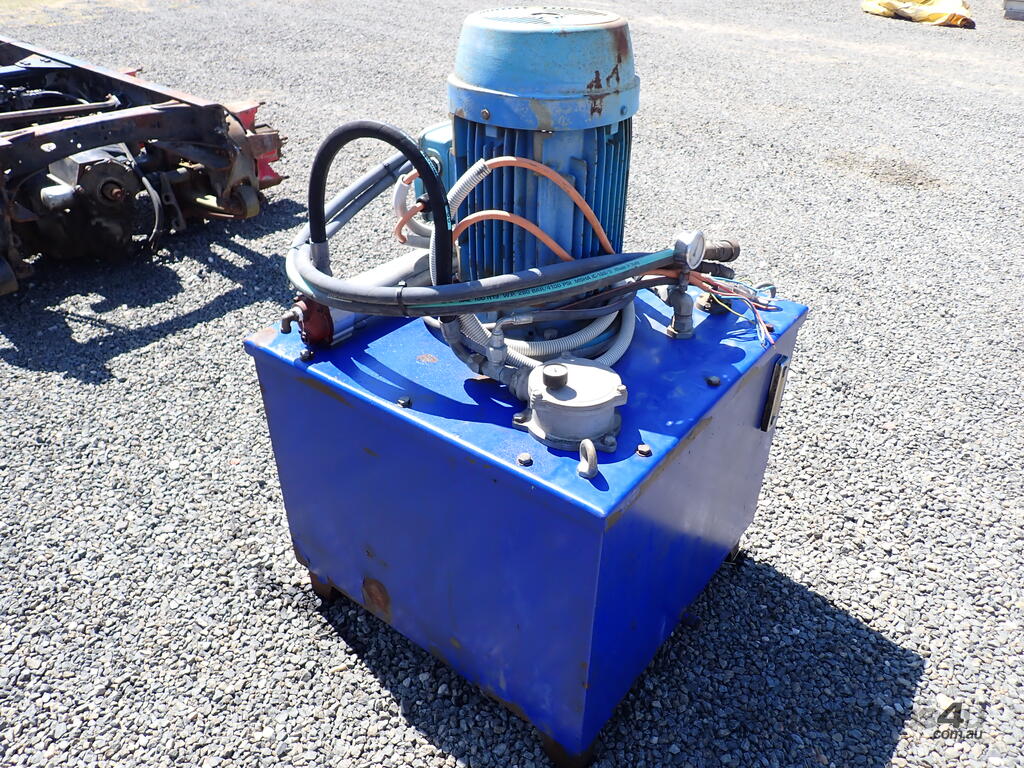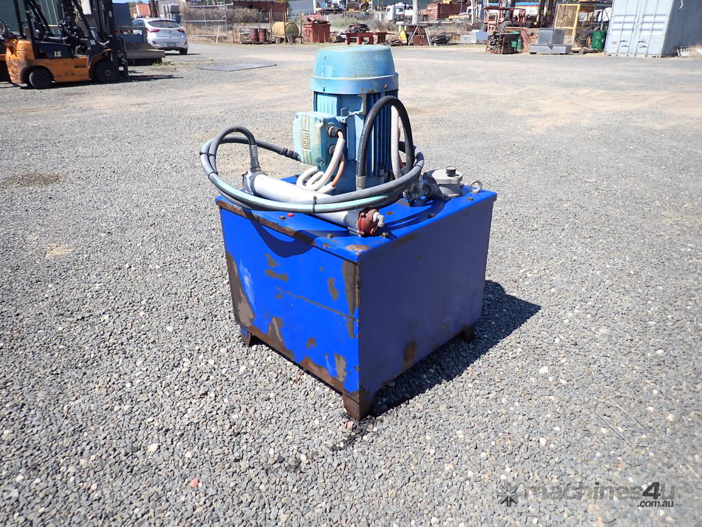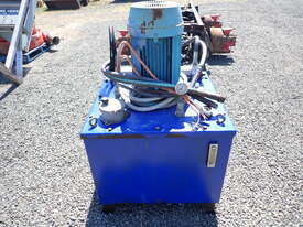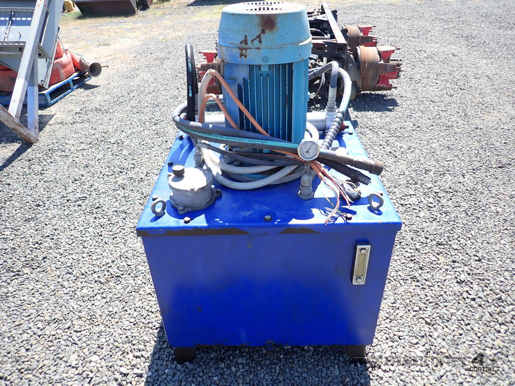 Electric hydraulic power pack, Custom made, 15 KW 1460 Rpm 3 phase electric motor, in tank hydraulic pump, Fluid Dynamics oil cooler/heat exchanger, 280L oil capacity, pressure gauge, hoses with quick couplers, in tank filter, onit appears to be in good condition and was operating until removed.