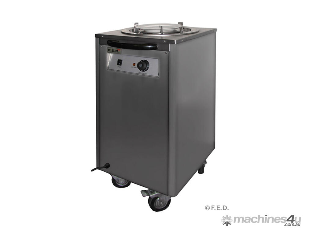 Single Mobile Plate Lowerator • Maximum plate diameter is 30 cm • Temperature controlled from 50ºC to 80ºC • Stainless Steel construction • 60 to 80 plates (depends on thicknesss) • on castors 1 Year Parts and Labour Warranty Depth: 485 mm | Width: 450 mm | Height: 920 mm | Power: 240V; 400W; 2A | Net Weight: 31 | Price: $1069 | Manufacturer: Elementry | Warranty: 1 Year Parts and Labour