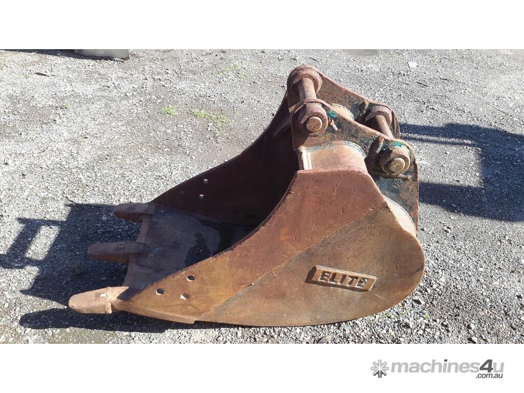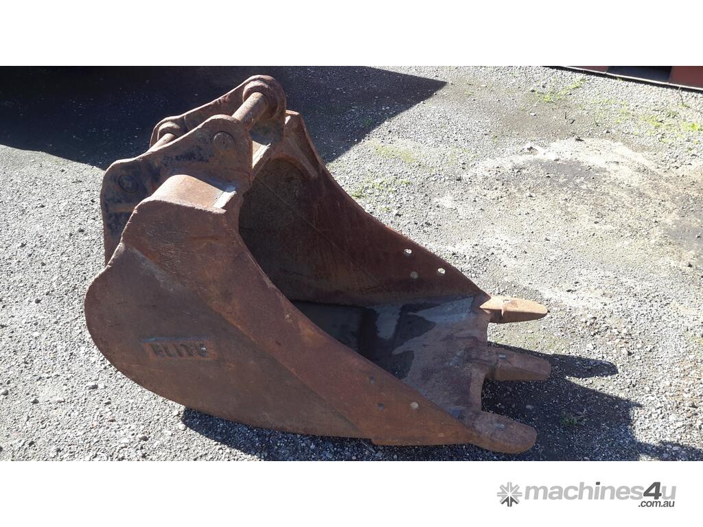 Durable Elite 560mm trenching bucket designed for efficient digging in tight or narrow spaces. Features 3 teeth for solid ground penetration and is in good condition.