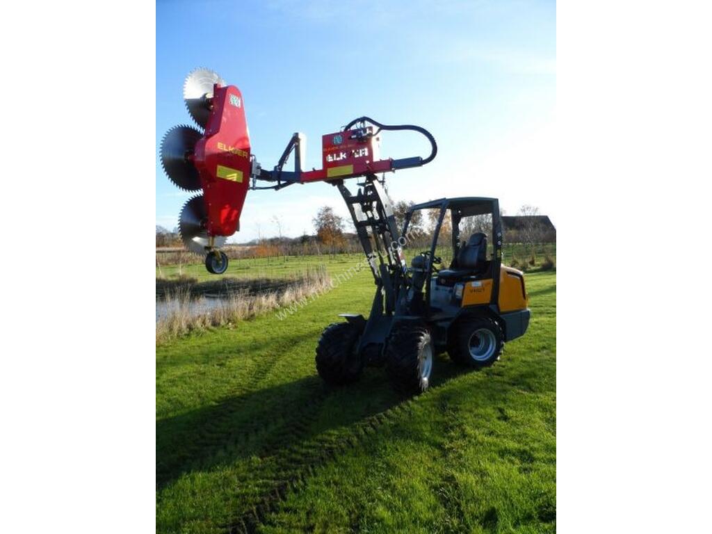 The HS1750 has been developed to suit the dimensions of mini-loaders, smaller tractors, e.g. park tractors. The HS1750 is equipped with 3x Ø600mm sawblades, which enables it to cut branches of up to 150mm in thickness. The HS1750 is well suited for the purpose of maintain all kinds of hedges, bushes and trees, and it will effectively cut branches with clean cuts. The work speed is normally about 4 km/h, and up to 8 km/h at max., which gives this hedge saw a great work-capacity. The HS1750 is compatible with all Elkær reach arms, and can be mounted to reach arms and booms from other manufacturers as well.