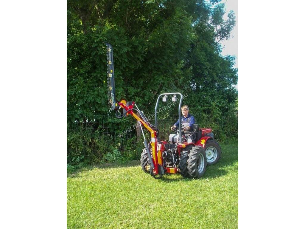Mount the new Elkaer Termit HK1300-3 hedge cutter to a big lawn mower – e.g. a Stiga Park/Titan or Husqvarna TD26 – and get rid of unhealthy working positions. It is often seen that hedge cutting causes challenges both for the physics and the machine, but the Elkaer Termit makes it easy as never before. The HK1300-3 trimmer bar is very flexible and you can cut both on left and right side of the tool carrier if you combine the trimmer bar with our small Termite reach arm. In this combination it easily cuts both vertical, horizontal and tilted lines from the ground level and up to 3,5 meters. The Elkaer Hk1300-3 cuts every hedge from thuja to beech and is a must for those who want a perfect result!