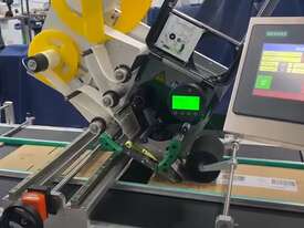1. RPM Label Applicator applies labels onto flat surfaces via a loading platform and high friction belting.
