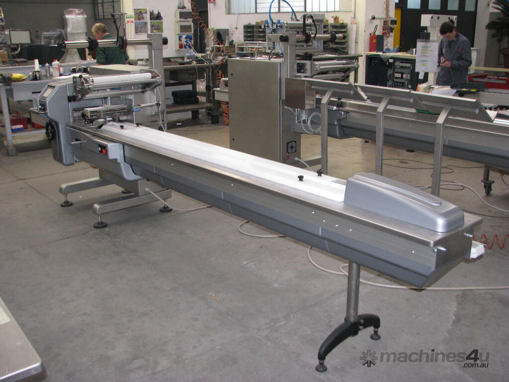High Speed & Versatility: Wraps up to 120 packs/min (160 in special versions) with product sizes up to 450mm long.