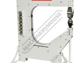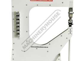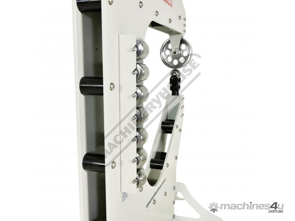 The largest model in our Metalmaster range the EWHD-100 has been designed for the ultimate in rigidity and versatility without the high price tag. This heavy-duty machine has a throat depth of 1016mm with side frames manufactured from 14mm thick steel plate, weighing in at nearly 500kg to ensures it maintains maximum rigidity, making it perfect for the craftsman wanting that higher level of finish and control while metal shaping. With a 254mm (10”) x 76.2mm (3”) upper wheel this solid performer is capable of shaping mild steel up to 1.6mm (16 gauge) and with the large throat depth giving you ample room to shape large panels. The upper wheel and 8 lower anvils are all hardened to 45-50HRC ensuring longer life and with independent adjustment on the lower anvil cradle allows versatility to get the perfect clearance every time.