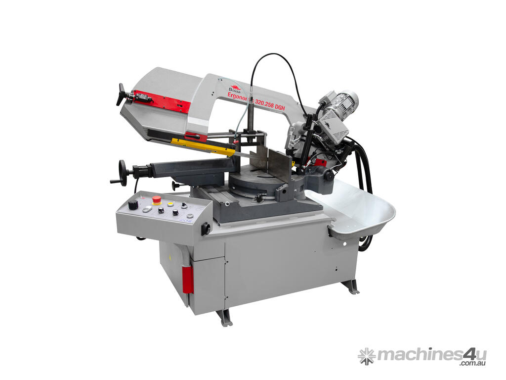 Bomar Ergonomic 320.258DGH is a semi-automatic band saw with a heavy saw frame of vibration-proof cast alloy, with a powerful industrial engine and a spiral gearing running in an oil bath,