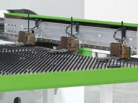 • Flexible table options with brush, ball or combined brush+ball surfaces and three pneumatic clamps; handles sheets up to 225 kg .