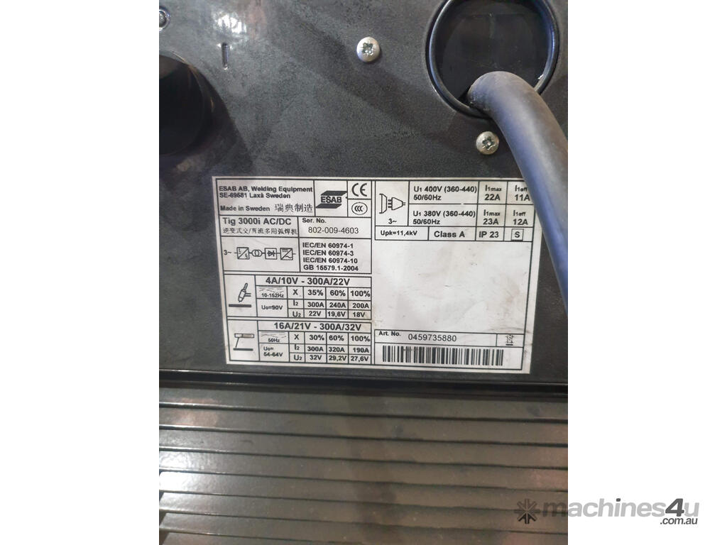 ESAB Origo 3000i AC/DC TA24 In both DC and AC mode this TIG welding machine will give an excellent start and stable arc. All types of material and thickness can be welded with the highest quality.