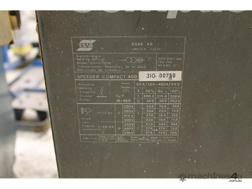 We have a  good used condition, ESAB Speeder Compact 400 Mig welder for sale.
