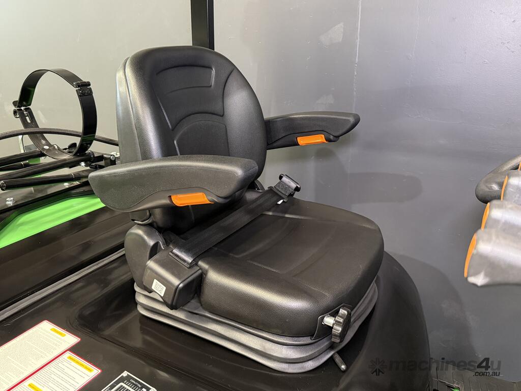 Safety belt on seat, maintenance-accessible components, and standard lighting system ensure operator safety.