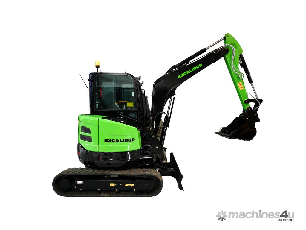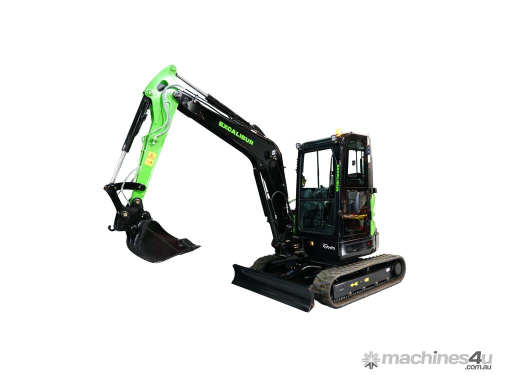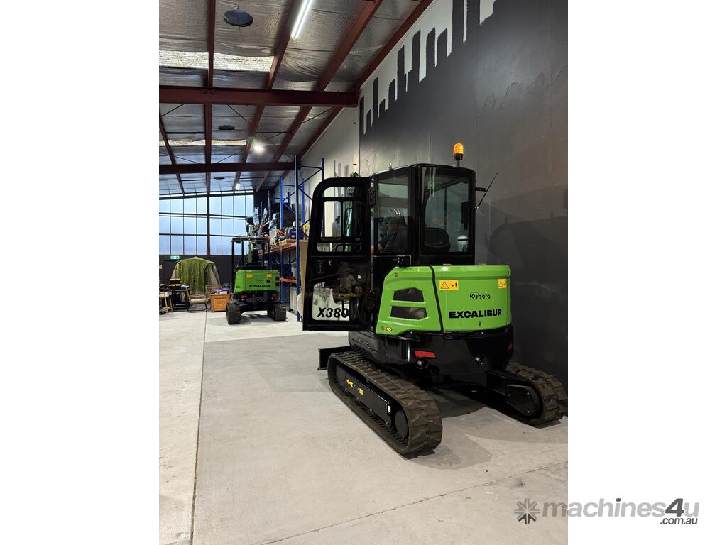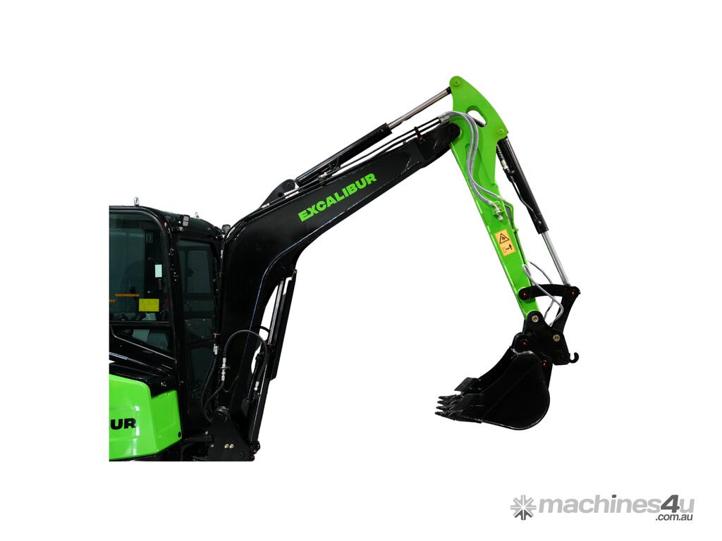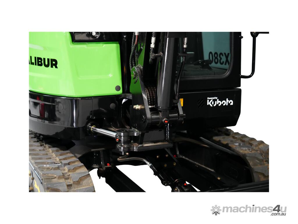 Produced with a Kubota D1793 engine , the Excalibur Machinery X380 is our heavy duty unit. This piece of equipment comes with a boom length of 2450mm, an arm length of 1400mm and a bucket digging force of 30.4kN.