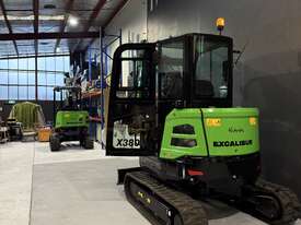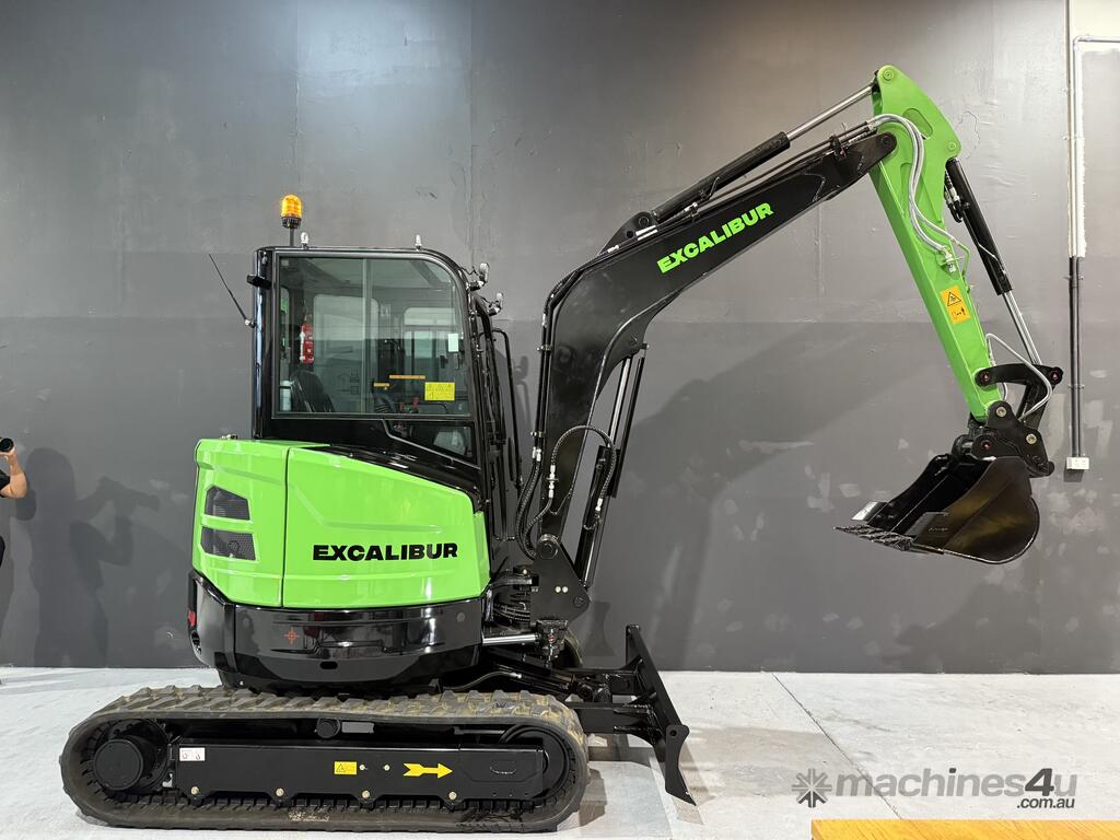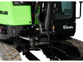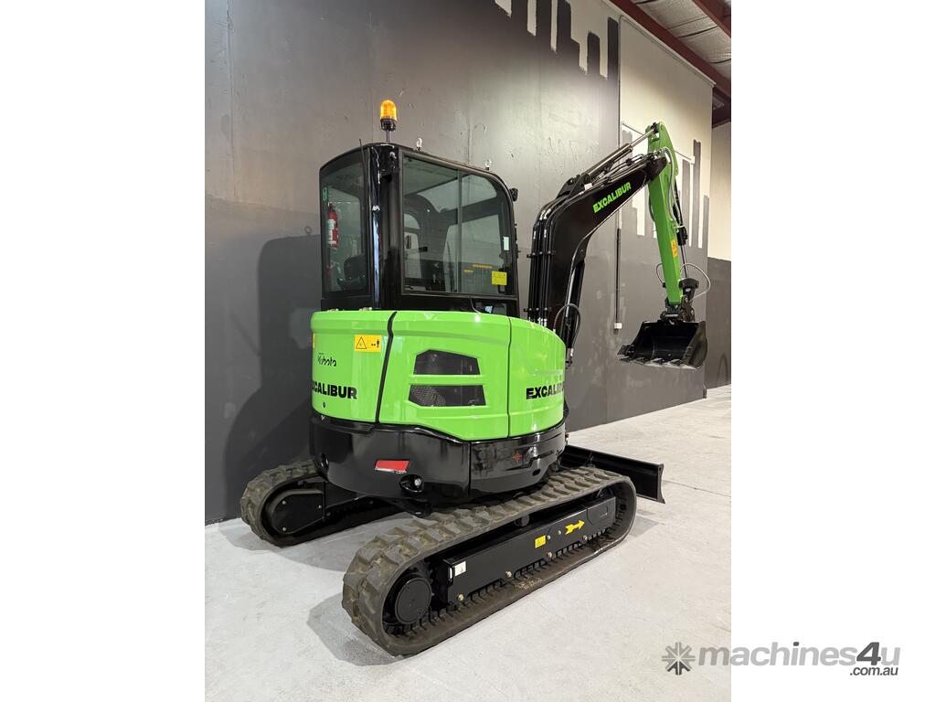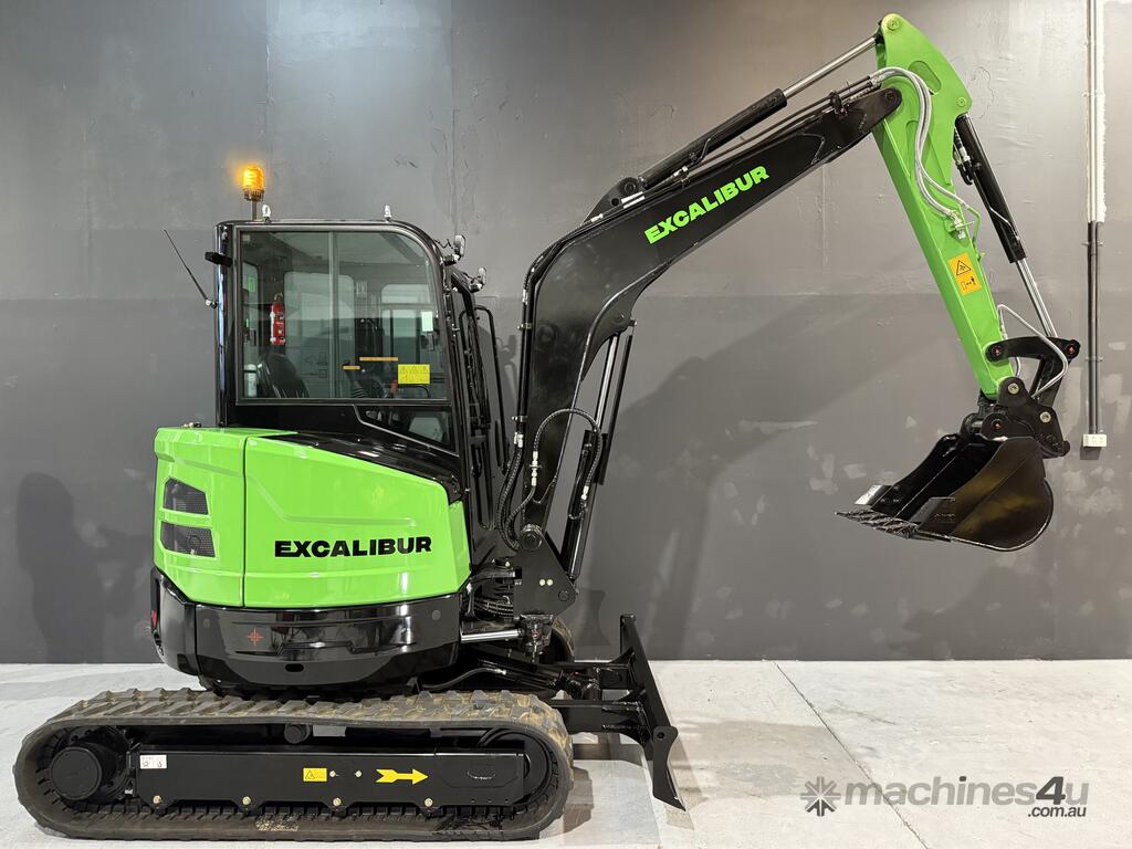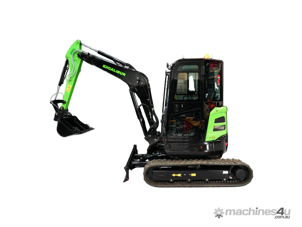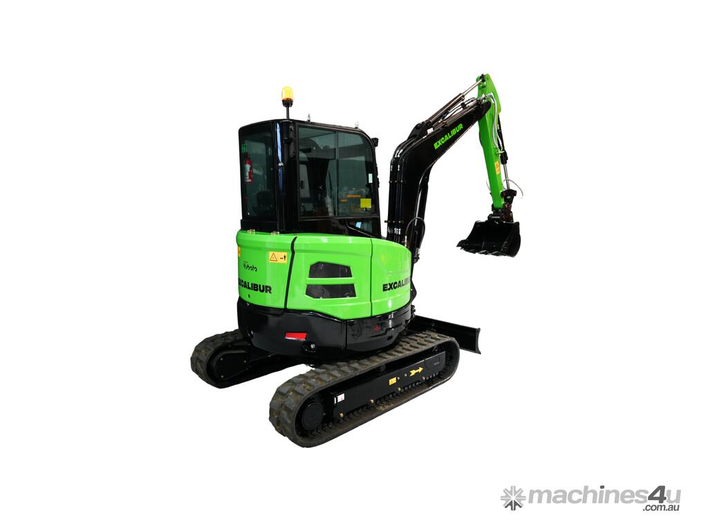 Produced with a Kubota D1793 engine , the Excalibur Machinery X380 is our heavy duty unit. This piece of equipment comes with a boom length of 2450mm, an arm length of 1400mm and a bucket digging force of 30.4kN.