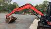 2022 HITACHI ZX55U-5 ZERO SWING EXCAVATOR WITH FULL A C CABIN, LOW 475 HOURS. HYDRAULIC SAFETY HITCH, DOZER BLADE, DUAL HAMMER AND AUGER PIPING, RUBBER TRACKS, 2 SPEED, 300, 450 600MM DIG BUCKETS, MUD BUCKET WITH BOE, FU....