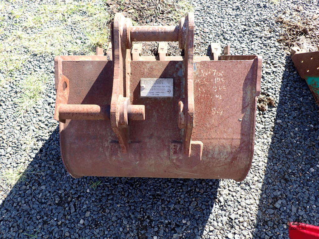 Excavator digging bucket, LD Brown brand, 700mm wide, 245mm pin centers, 145mm between ears, 45mm diameter pins, fitted with 5 teeth and side cutters, suit 3 to 5 ton excavator but may also fit a backhoe, bucket in is good condition and has not done much work at all.
