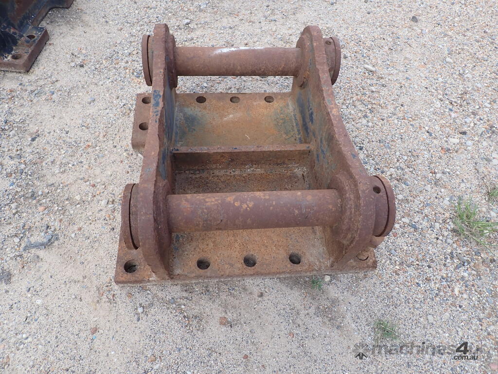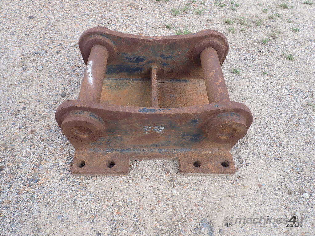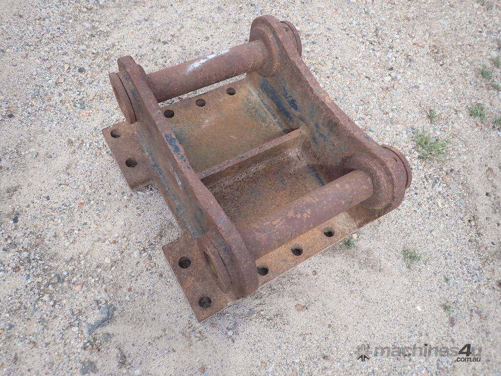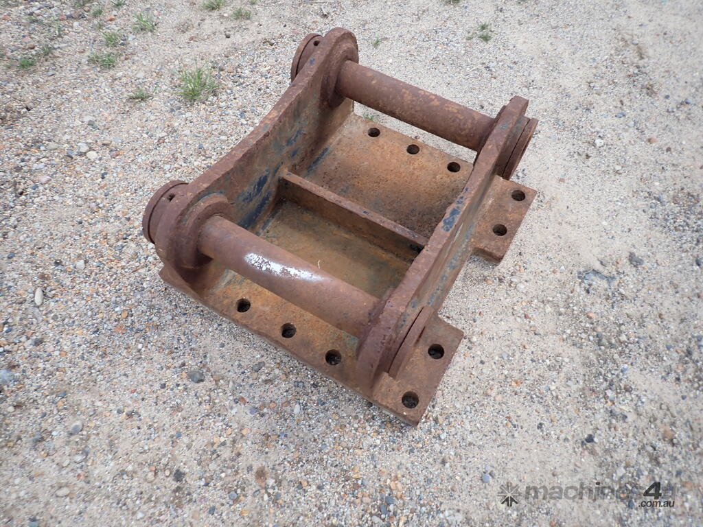 Excavator head plate/bracket, Earthmaster brand, suit 20 to 30 ton machines approximately, 565mm pin centers, 405mm between ears, 85mm diameter pins, good solid construction, with pins, suit mounting or adapting any attachment, good condition, ready to use.